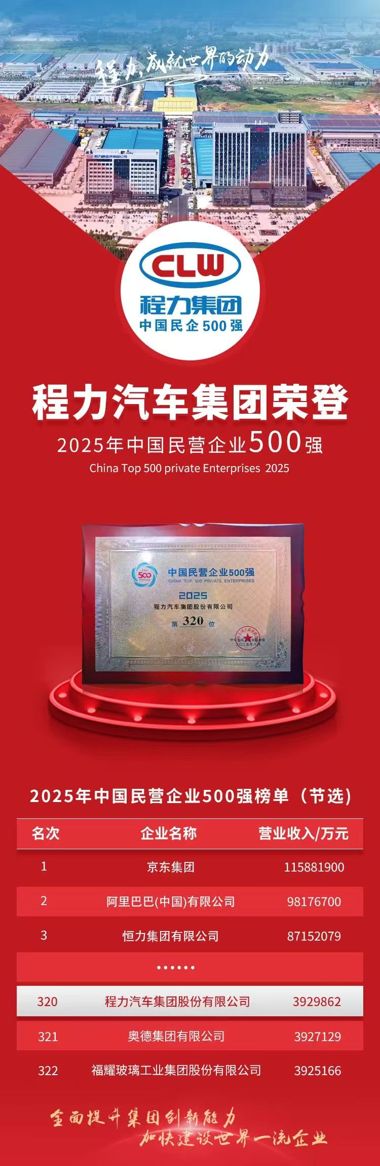 新聞追蹤 :程力集團(tuán)連續(xù)八年榮登**民企500強(qiáng)、**制造業(yè)民營(yíng)企業(yè)500強(qiáng)雙榜單,董事長(zhǎng)程阿羅受邀參加發(fā)布會(huì)并上臺(tái)**獎(jiǎng)《程力汽車》內(nèi)刊程力汽車集團(tuán)2025年08月29日 11:21湖北2025年全國(guó)工商聯(lián)**民企500強(qiáng)、**制造業(yè)民營(yíng)企業(yè)500強(qiáng)雙榜單頒獎(jiǎng)大會(huì)現(xiàn)場(chǎng),數(shù)百名**嘉賓齊聚一堂共襄盛舉。 本刊訊(...
